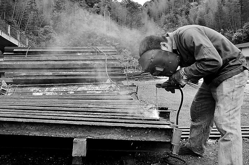 近日,永安煤業(yè)公司池坪蘆坑煤礦從即將閉坑的礦井調(diào)入了一批舊鋼棚的棚腿。為了使棚腿在井下架棚支架后棚梁不會脫出,該礦在每根舊棚腿上都焊接了U型槽。圖為4月8日,該礦機(jī)運(yùn)隊(duì)職工正在舊棚腿上焊接U型槽。