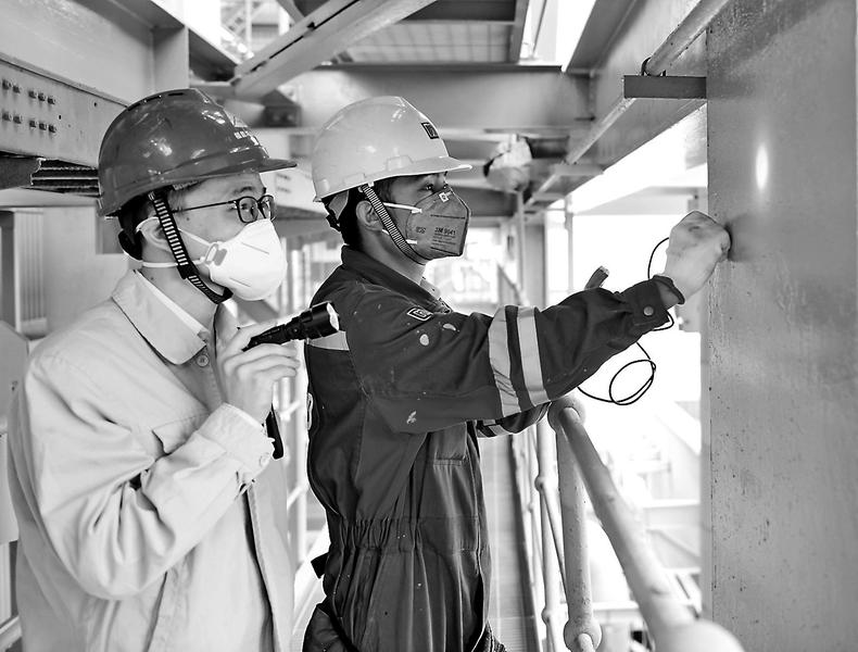 復(fù)工以來,鴻山熱電公司廠區(qū)防腐工作有條不紊、進(jìn)展順利。該公司專門成立防腐小組,確保防腐施工中遇到的問題能夠及時(shí)解決。圖為4月21日,該公司鍋爐專業(yè)人員同油漆監(jiān)理正在對(duì)#1鍋爐7層鋼結(jié)構(gòu)油漆漆膜厚度進(jìn)行測量驗(yàn)收。