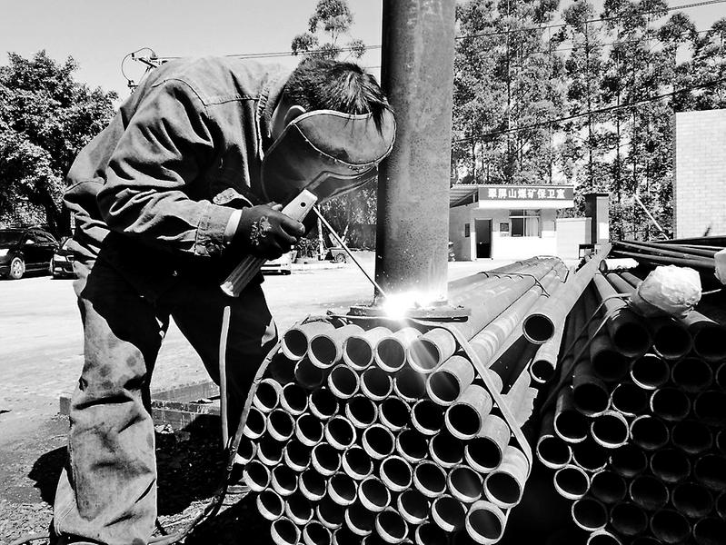隨著雨季的臨近,福建煤電公司翠屏山煤礦抓緊時(shí)間增設(shè)一路8吋排水鐵管,提升井下防排水能力,確保安全度汛。圖為4月12日,該礦機(jī)電隊(duì)焊工利用周末加班焊接水泵連接變彎管。(張文環(huán)攝影報(bào)道)