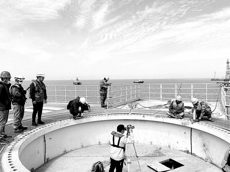 三川海上風(fēng)電公司以“543”攻堅戰(zhàn)為契機,謀劃節(jié)點目標(biāo),加強各參建單位聯(lián)動,搶抓施工進(jìn)度,風(fēng)機基礎(chǔ)交安驗收有序進(jìn)行。圖為4月27日,莆田平海灣F10風(fēng)機機位基礎(chǔ)交安現(xiàn)場。(吳敏攝影報道)