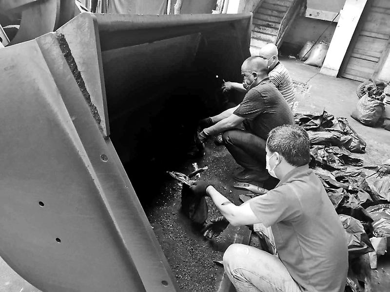 一直以來(lái),福建煤電公司雁石發(fā)運(yùn)站重視灑煤的回收工作,確保煤炭能夠“顆粒歸倉(cāng)”。圖為近日,該站煤炭回收小組成員對(duì)灑落的煤炭進(jìn)行回收。(朱德月攝影報(bào)道)