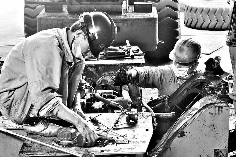 “五一”期間,永安煤業(yè)公司豐海篩選廠堅持生產(chǎn)銷售不停步,假期前3天進(jìn)廠原煤3848噸,銷售商品煤724噸。圖為5月4日,該廠機(jī)電技術(shù)工人正在搶抓時間更換裝載機(jī)變速箱總成。(黃發(fā)灼攝影報道)