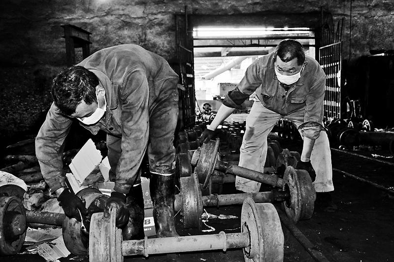 福建煤電公司龍?zhí)睹旱V礦車(chē)維修班以強(qiáng)化礦車(chē)檢修質(zhì)量為管理目標(biāo),通過(guò)加強(qiáng)對(duì)礦車(chē)斗、碰頭、卡銷(xiāo)、輪對(duì)完好情況進(jìn)行檢修,嚴(yán)查維修質(zhì)量不達(dá)標(biāo)現(xiàn)象,以此促進(jìn)檢修質(zhì)量再上新臺(tái)階,力保維修礦車(chē)完好率。圖為近日,礦車(chē)維修班維修人員正在認(rèn)真檢查維修礦車(chē)輪對(duì)。(陳思忠攝影報(bào)道)