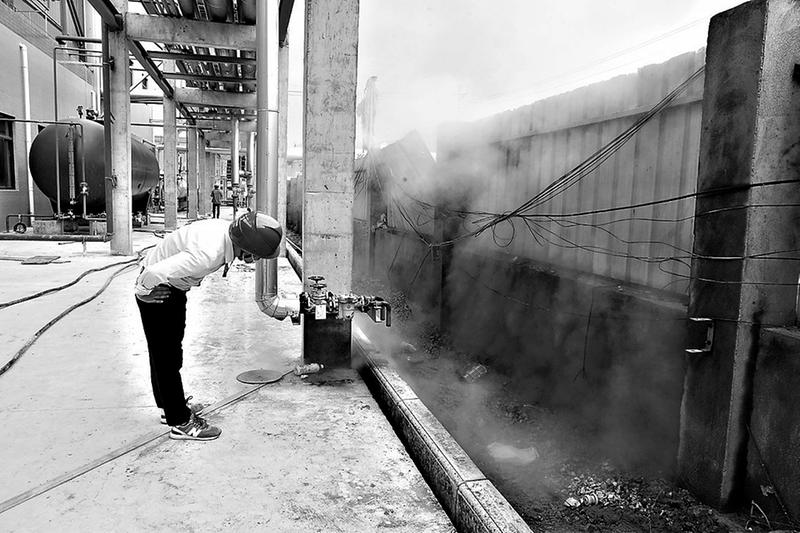 近日,龍安熱電公司熱工技術(shù)及運行管理人員在福建匯得新材料有限公司的配合下對該公司的供熱入戶管道進(jìn)行了暖管和吹掃,并對計量裝置和設(shè)施進(jìn)行全面調(diào)試。隨著相關(guān)工作的完成,龍安熱電公司2020年新增首家用熱企業(yè)。圖為工作人員正在檢查供熱管道吹掃情況。(福龍宣 攝影報道)