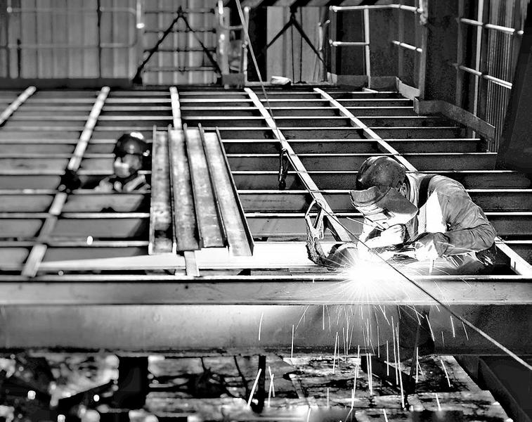 圖為施工人員正在對燃燒器平臺進行焊接。