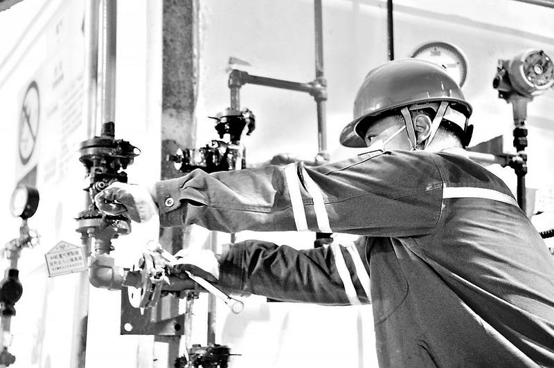5月15日,晉江氣電公司開展了4號(hào)機(jī)組擴(kuò)大性B級(jí)檢修工作。目前,各項(xiàng)工作有條不紊進(jìn)行中。圖為5月19日,檢修人員正在對(duì)4號(hào)發(fā)電機(jī)供氫、供二氧化碳管線加裝堵板,為發(fā)電機(jī)轉(zhuǎn)子抽出做準(zhǔn)備工作。(王素環(huán) 攝影報(bào)道)