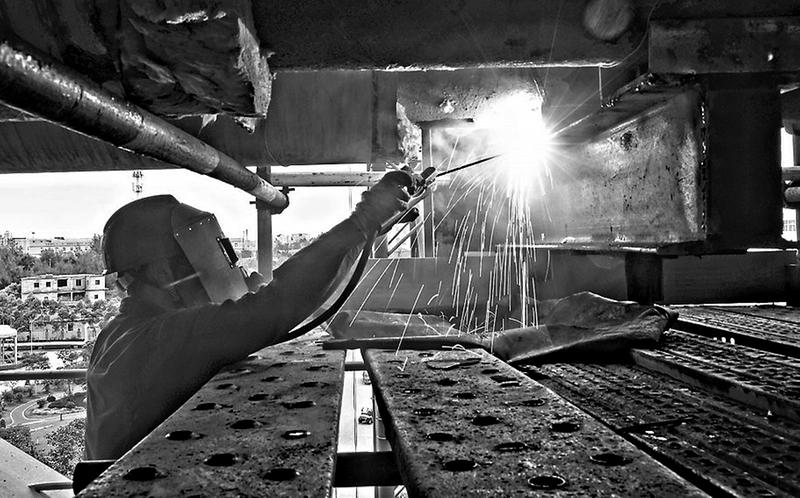鴻山熱電公司鍋爐房鋼構(gòu)均出現(xiàn)了不同程度的銹蝕情況。該公司快速研究制定整改方案,從5月13日開始對(duì)#1爐煤粉管吊架銹蝕部分進(jìn)行整改。目前,此項(xiàng)整改工作正在有序進(jìn)行中。圖為工作人員正在對(duì)煤粉管吊架進(jìn)行焊接更換。
