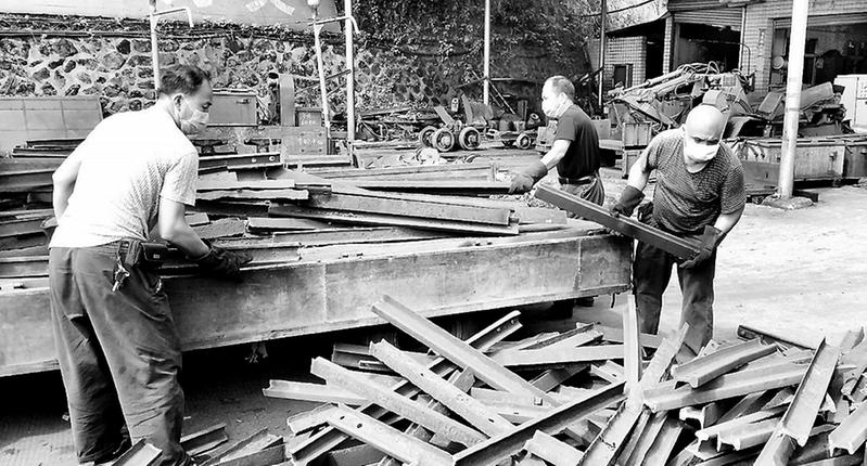 近日,天湖山能源公司含春礦從即將關(guān)閉的礦井井下回收的部分廢舊鋼軌,經(jīng)加工用于作業(yè)隊備頂支護。圖為5月16日,井運人員周末加班將加工完成的100根短軌送井下作業(yè)隊使用。(姚文華 攝影報道)