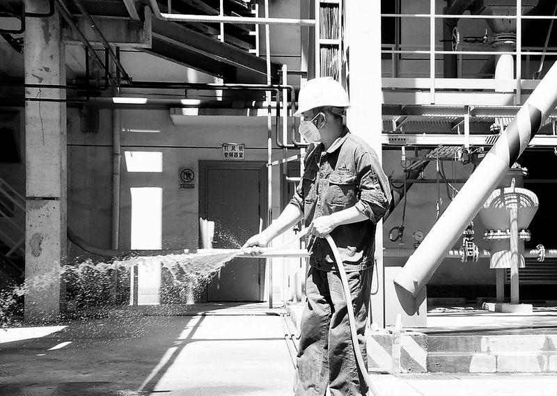 龍安熱電公司積極打造精品熱電,將“7S”管理中的清潔作為常態(tài)化工作。圖為6月5日,員工正在清潔廠內(nèi)地板。(吳仙和 攝影報(bào)道)