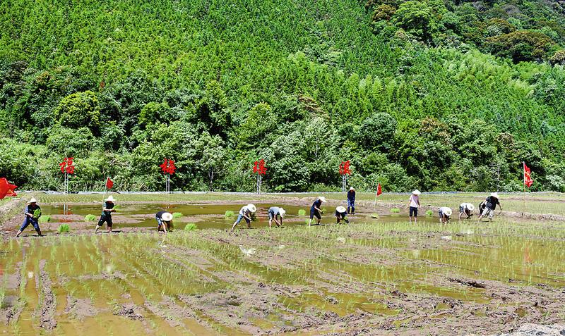 漳平煤業(yè)公司積極推進(jìn)關(guān)閉礦區(qū)土地復(fù)墾,探索推進(jìn)“生態(tài)農(nóng)業(yè)、生態(tài)觀光、生態(tài)治理”三者齊頭并進(jìn)的老礦發(fā)展新路。注冊(cè)了“福梅瑤溪”商標(biāo),利用原大瑤礦區(qū)73.26畝土地的自然優(yōu)越條件復(fù)墾水田,種植紅米、黑米和香米等綠色生態(tài)無(wú)公害大米。圖為6月16日,該公司組織黨員干部在該礦區(qū)復(fù)墾農(nóng)田開展插秧“主題黨日”活動(dòng)。(李歡攝)