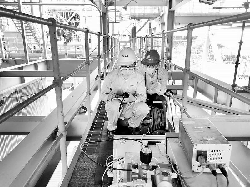 為提高設(shè)備安全運(yùn)行可靠性,鴻山熱電公司邀請(qǐng)西安熱工研究院對(duì)該公司#2機(jī)組SCR脫銷裝置開展噴氨優(yōu)化及性能考核試驗(yàn)。圖為鍋爐專業(yè)點(diǎn)檢配合西安熱工研究院技術(shù)人員進(jìn)行脫銷噴氨優(yōu)化試驗(yàn)。(林欽 攝影報(bào)道)
