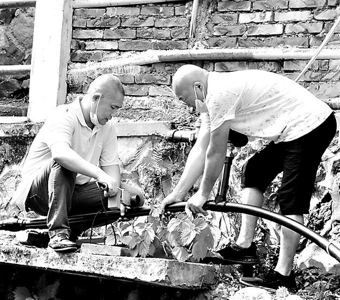 圖為吳賀忠(左)與同事為住戶接水管。 吳賀忠是福建煤電公司坑柄留守處的物業(yè)站長(zhǎng),常年風(fēng)吹日曬,黝黑的臉龐上映著樸實(shí)的笑容。1995年參加工作的吳賀忠是一名礦二代,從小在礦山長(zhǎng)大的他踏實(shí)肯干,對(duì)礦上的一草一木有著很深的感情,他說(shuō)礦山就是他的第二故鄉(xiāng)。