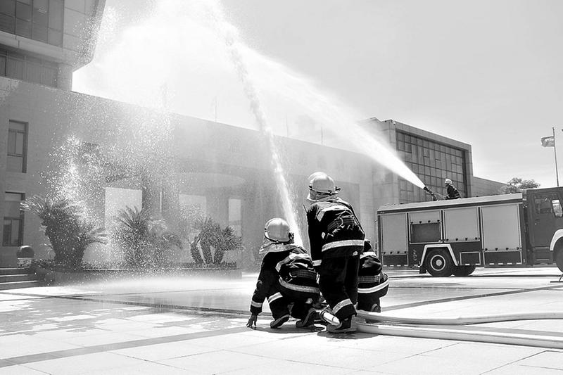 5分鐘內(nèi),消防車、消防員全副武裝、迅速到位,消防員用水槍滅火并組織疏散和緊急救援。