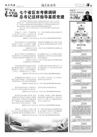 七個(gè)省區(qū)市考察調(diào)研總書記這樣指導(dǎo)基層黨建