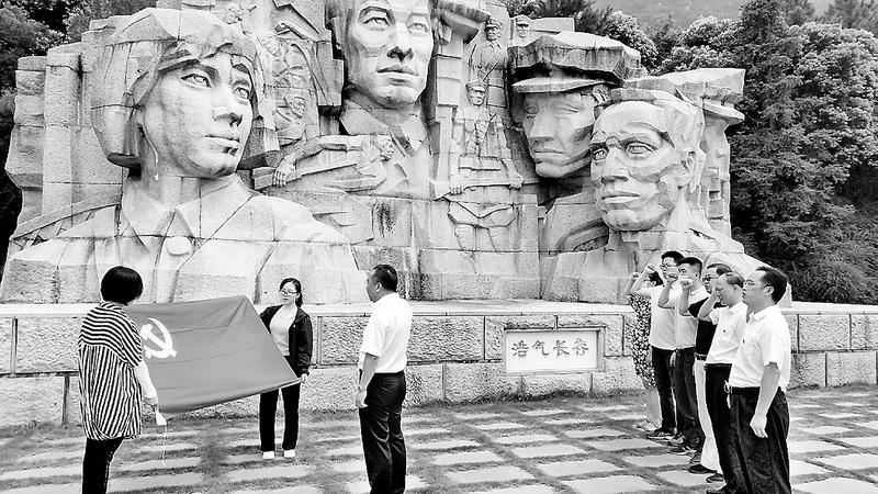 福能擔(dān)保公司黨支部開展以“擔(dān)責(zé)任、保初心”為主題的“七一”系列活動。圖為6月24日,全體黨員到長樂江田鎮(zhèn)南陽村參觀省委舊址,接受革命歷史教育。