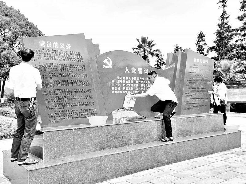 永安煤業(yè)公司仙亭煤礦開(kāi)展慶祝建黨99周年系列活動(dòng)。圖為6月30日,該礦黨總支在黨建主題公園開(kāi)展黨員義務(wù)勞動(dòng)。