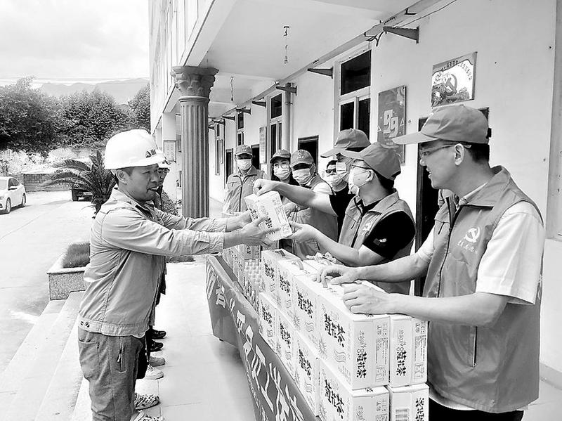 7月1日,建材控股福清混凝土公司支部委員會(huì)黨員志愿者為一線(xiàn)員工送去菊花茶、冬瓜茶等防暑降溫用品。