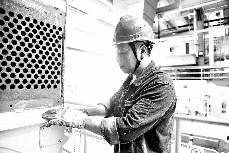 面對持續(xù)的高溫天氣,,龍安熱電公司廣大干部職工堅持以生產(chǎn)為重,做好現(xiàn)場生產(chǎn)工作。圖為77月66日,,該公司職工正在維修風機電機空冷器。(吳仙和攝影報道)