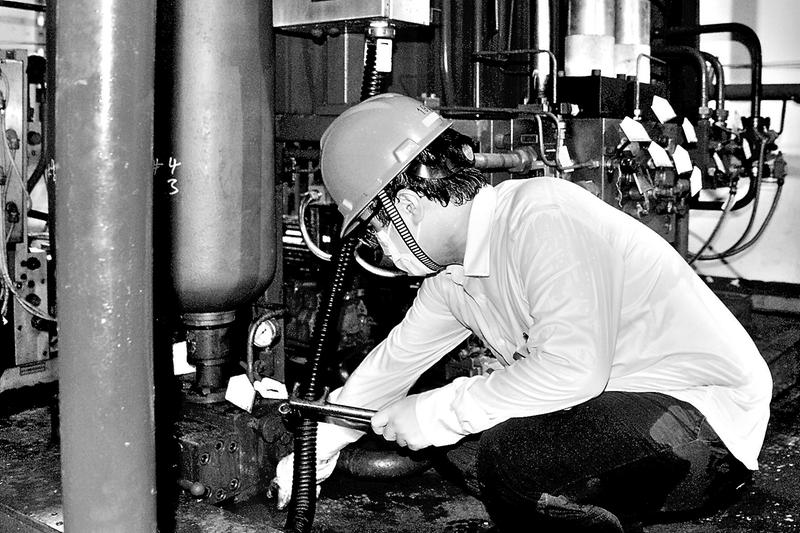 晉江氣電公司4號(hào)機(jī)組擴(kuò)大性B順利進(jìn)入檢修后調(diào)試階段,各分系統(tǒng)試運(yùn)行工作如期展開(kāi)。圖為7月7日,該公司運(yùn)行人員正在對(duì)液壓油系統(tǒng)閥門(mén)狀態(tài)進(jìn)行檢查核對(duì),汗水濕透了衣裳。