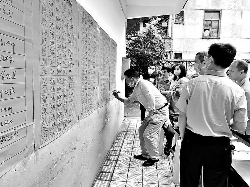 選房人員按分?jǐn)?shù)由高至低順序依次上前,對(duì)紅紙上所羅列的房源進(jìn)行挑選、簽字、確認(rèn)。最終,53名選房人員如愿挑選到了滿意的套房。經(jīng)過多方努力,福能小鎮(zhèn)第二批住房分配活動(dòng)圓滿落下帷幕。(黃藝欣攝影報(bào)道)