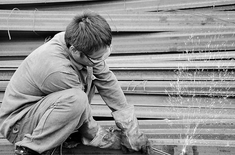為保障井下巷道掘進(jìn)以及維護(hù)所用的鋼支架供應(yīng)充足,福建煤電公司龍?zhí)睹旱V要求機(jī)電人員必須全力以赴保障鋼架焊制加工環(huán)節(jié)不出紕漏。圖為7月9日上午,該礦電焊工在機(jī)修車間焊接工鋼。(簡(jiǎn)盛敏 攝影報(bào)道)