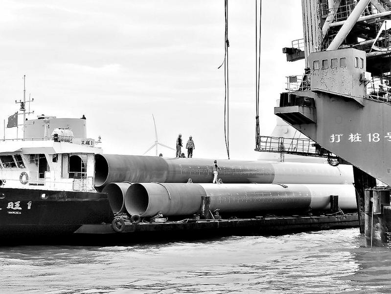 7月15日18時(shí),三川風(fēng)電公司S16機(jī)位8根樁全部沉樁完成,標(biāo)志著該公司兩個(gè)項(xiàng)目共計(jì)49臺(tái)高樁承臺(tái)基礎(chǔ)沉樁施工全部完成,為后續(xù)風(fēng)機(jī)承臺(tái)基礎(chǔ)澆注及風(fēng)機(jī)并網(wǎng)發(fā)電奠定了基礎(chǔ)。圖為沉樁施工現(xiàn)場(chǎng)。