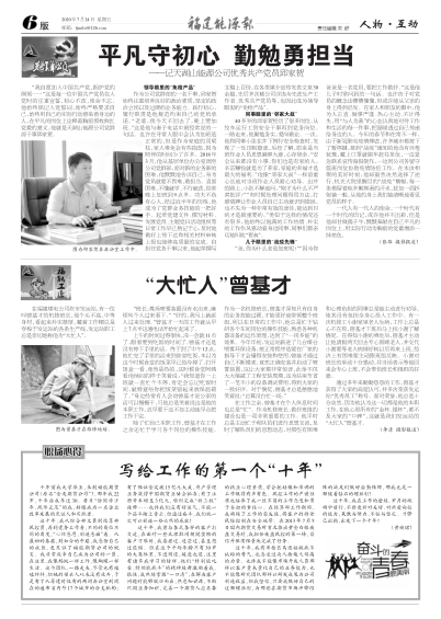 上午的時間過得很快,沒一會就11點了,眼看要到吃飯的時間了,曾基才還是沒有停下手里的活。終于到了中午12點,他忙完了手里的活來到食堂吃飯,本以為這個時候食堂的飯菜早已經(jīng)冷掉了,打開飯盒一看,竟然是熱的,這時候食堂阿姨看他納悶的樣子笑著說:“我知道你一上班就一直忙個不停,肯定會忘記吃飯時間,就特意給你把飯菜留起來放保溫箱了。”身邊經(jīng)常有人會勸曾基才說公家的活可以慢慢干,可他總是笑著說這是他的本職工作,遲早要干還不如主動地早點把工作干完。
