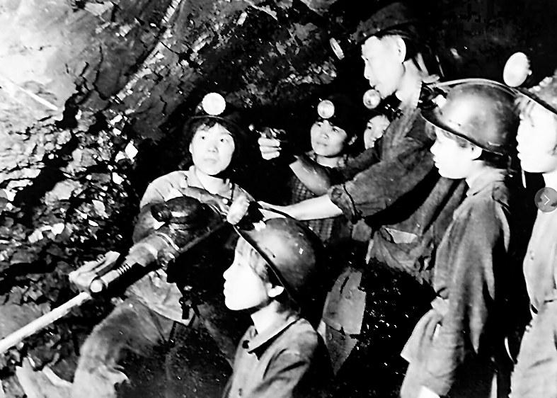 圖為郭高路(右三)擔任女子掘進隊副隊長時的老照片。