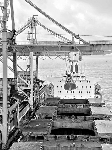 隨著“金海發(fā)”的離泊,肖厝港物流公司駐鴻山熱電項(xiàng)目部七月份安全完成卸煤作業(yè)11船次98.54萬(wàn)噸,創(chuàng)鴻山電廠碼頭自投產(chǎn)以來(lái)單月卸煤作業(yè)量最高紀(jì)錄。圖為“金海發(fā)”卸煤作業(yè)現(xiàn)場(chǎng)。(王偉丞攝影報(bào)道)