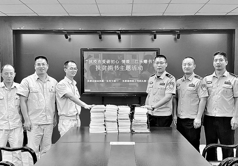 8月5日,肖厝港物流公司碼頭第一黨支部與肖厝出入境邊防檢查站執(zhí)勤一隊黨支部舉行黨建共建協(xié)議簽訂儀式暨“抗疫有愛礪初心情暖三江樂贈書”主題活動。圖為兩個黨支部向貧困地區(qū)的兒童捐贈了100余冊書籍。(盧金景攝影報道)