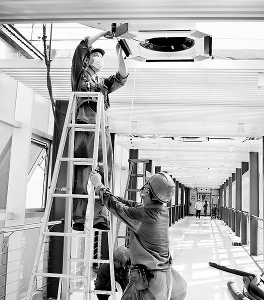 (劉寒婷攝影報道)圖為設(shè)備部在““安全橋安全橋””安裝空調(diào)安裝空調(diào)。