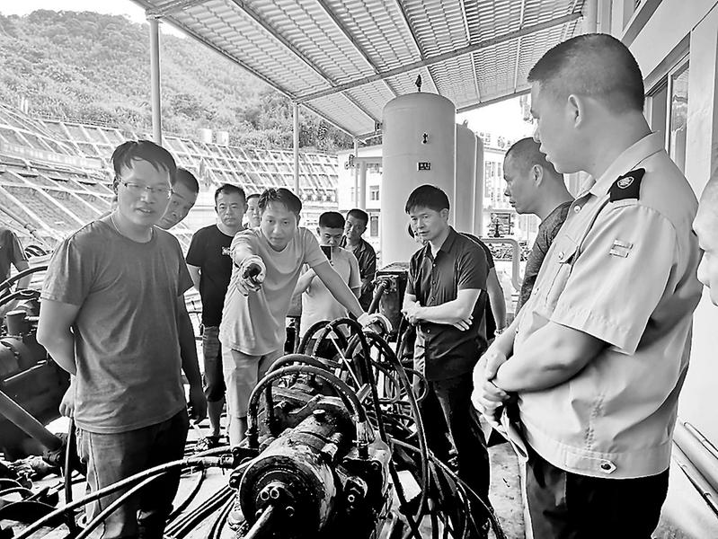 8月24日下午,漳平煤業(yè)公司箭竹坪煤礦組織探放水工等人員進行探放水設(shè)備使用培訓(xùn),做好防探水工作,確保安全生產(chǎn)。圖為培訓(xùn)現(xiàn)場。(賴雪玲攝影報道)