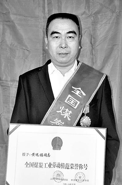 圖為黃遠福獲全國煤炭系統(tǒng)勞動模范表彰。(薛文勇攝)