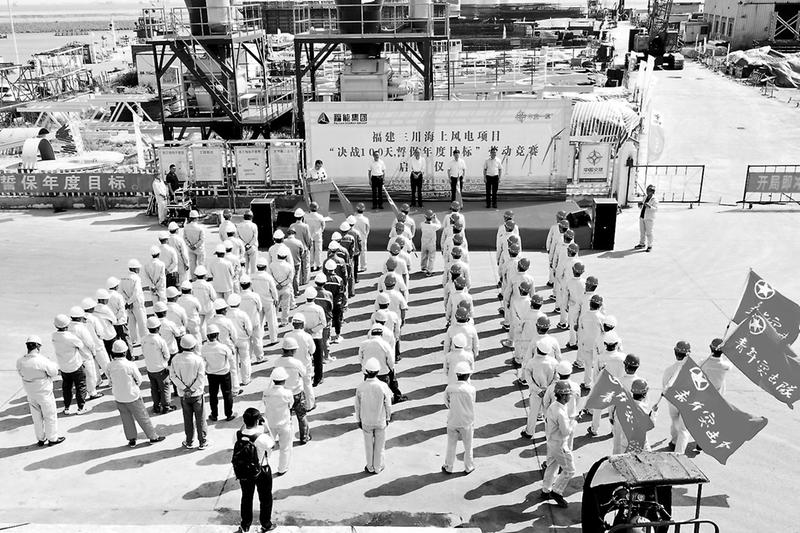 9月25日,三川風(fēng)電與中交一航聯(lián)合舉行“決勝100天,誓保年度目標(biāo)”勞動(dòng)競(jìng)賽啟動(dòng)儀式。福能集團(tuán)黨委委員、副總經(jīng)理周必信,中交一航黨