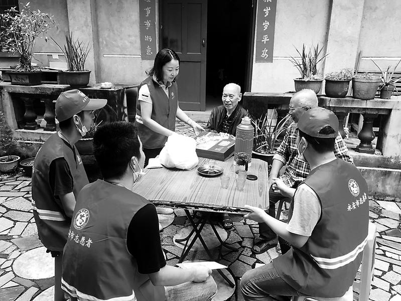 中秋國(guó)慶節(jié)前夕,永安煤業(yè)公司黨委組織青年志愿者開展“悅圓中秋,情暖鄰里”文明共建活動(dòng),深入永安市龍嶺社區(qū),向居民發(fā)放“厲行節(jié)約、反對(duì)浪費(fèi)”宣傳冊(cè),走訪慰問高齡困難戶。圖為9月25日,志愿者慰問95歲高齡老人。