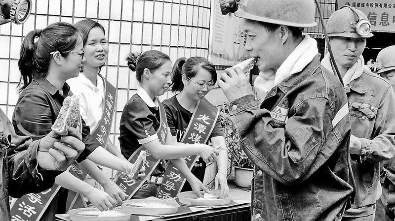福建煤電公司各基層單位紛紛開(kāi)展迎中秋國(guó)慶活動(dòng)。圖為9月24日,龍?zhí)兜V群團(tuán)組織人員為奮戰(zhàn)在生產(chǎn)一線的采掘職工送月餅。