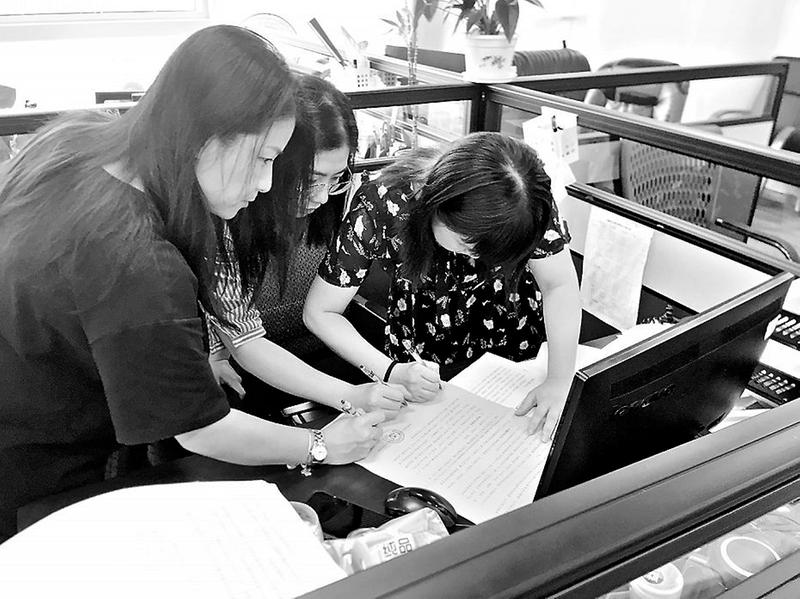 近日,,社區(qū)商業(yè)公司積極開展“杜絕浪費、厲行節(jié)約”倡議書簽名活動,號召廣大職工文明就餐,杜絕浪費,倡導文明新風。圖為該公司職工在倡議書上簽名承諾。(俞珍珍攝影報道)