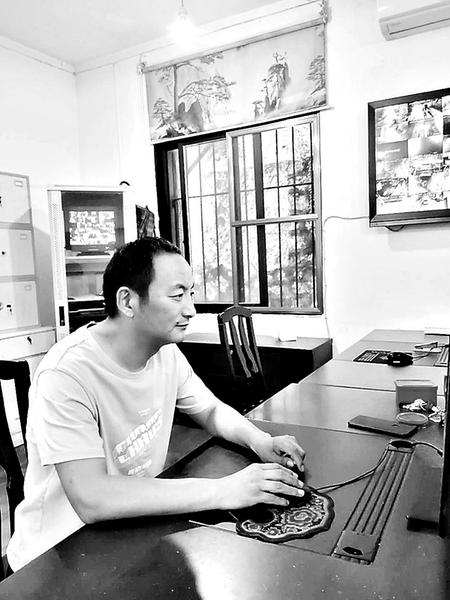 (羅耿陸 攝影報道)圖為趙方廷在統(tǒng)計資料。