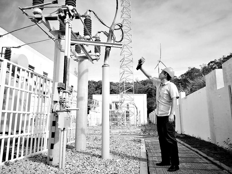 為確保秋冬季盛風期各生產(chǎn)設備穩(wěn)定運行,福能新能源公司漳州集控中心組織運行值班人員開展升壓站設備特巡,要求每日巡檢時做好溫度異常的引線接頭檢測,對特巡發(fā)現(xiàn)的異常部位進行復查并制定檢修計劃,在小風期時對異常部位進行維護處理。圖為10月13日,技術(shù)人員正在利用熱成像儀檢查各設備溫度情況。(黃黎煌 攝影報道)