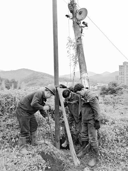 近日,福建煤電公司龍潭煤礦對地面建筑設施進行安全巡查時發現煤臺門口的一根電線桿因年久導致傾斜,不僅存在安全隱患,還影響過往的煤炭發運車輛。了解情況后,該礦迅速組織人員安裝新的電線桿消除隱患。圖為該礦施工人員為新的電線桿澆灌基礎。(簡盛敏 攝影報道)