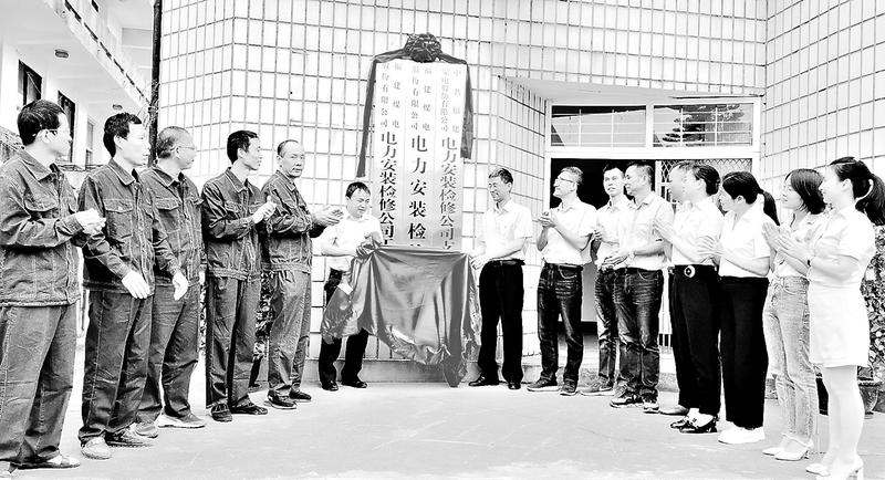 11月3日,福建煤電供電公司舉行新公司揭牌儀式,原供電公司正式換裝變身為電力安裝檢修公司,新公司的主營業務將由原來的礦山轉供電業務轉為電力安裝檢修業務。(張建文 攝影報道)