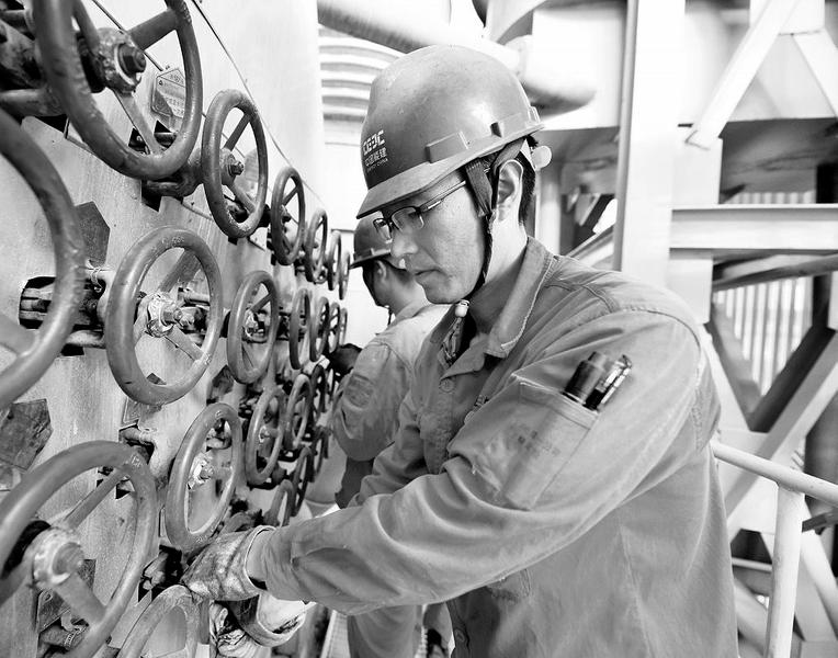 龍安熱電公司深入開展對標(biāo)一流管理提升行動(dòng),把各項(xiàng)工作落實(shí)到每一個(gè)環(huán)節(jié),努力打造環(huán)保、高效的熱電品牌。圖為11月3日,工人正在3號爐0至43米層對汽水閥門進(jìn)行清潔及加注油脂。(吳仙和 攝影報(bào)道)