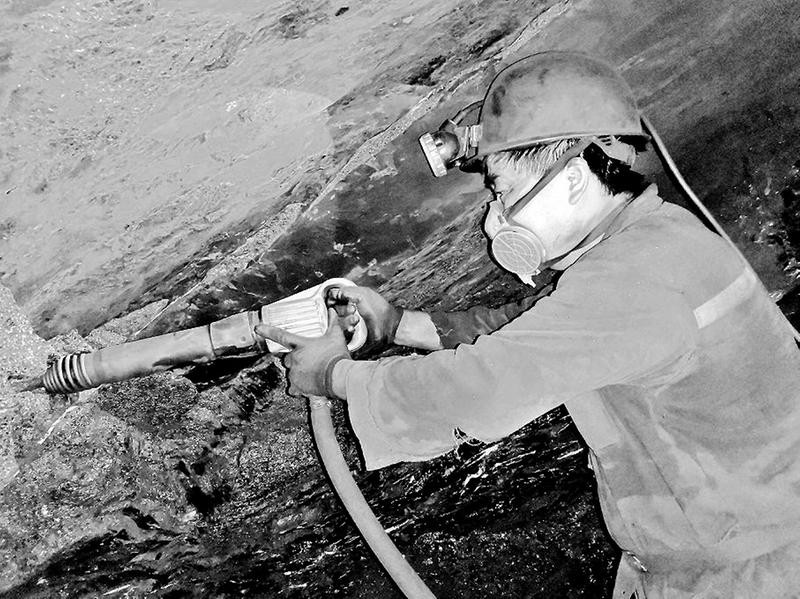 永安煤業(yè)公司水井坑煤礦大力推廣風(fēng)鎬落煤法,將風(fēng)鏟風(fēng)鎬結(jié)合使用,極大降低了火工品的使用,起到了節(jié)能減排的作用。圖為10月31日,該礦采煤工人正在使用風(fēng)鎬進(jìn)行作業(yè)。(鄒超男 攝影報(bào)道)