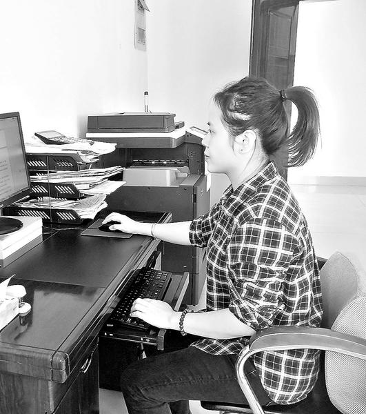 圖為日常工作中的陳婕妤。 陳婕妤是福建省鋼源粉體材料有限公司綜合部文員。2019年7月入職以來(lái),她始終踏實(shí)工作,任勞任怨,在平凡的崗位上踐行著共產(chǎn)黨員的初心和使命。