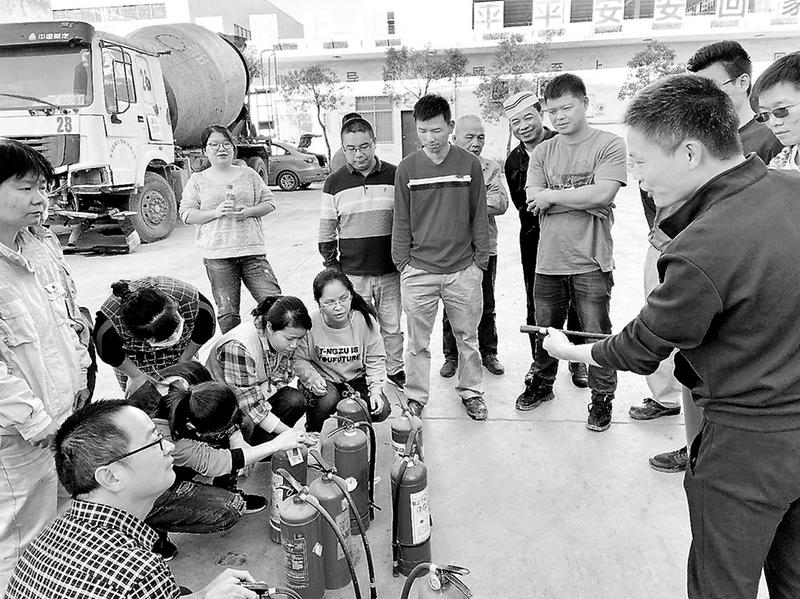 11月11日,建材控股龍巖混凝土公司開展消防安全知識培訓及現(xiàn)場演練活動,圖為培訓員正在講解滅火器的使用方法。(邱磊陳鈞天攝影報道)