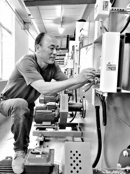 (蔡慶華 官華珍 攝影報(bào)道)圖為于術(shù)閩在修理機(jī)器配電箱