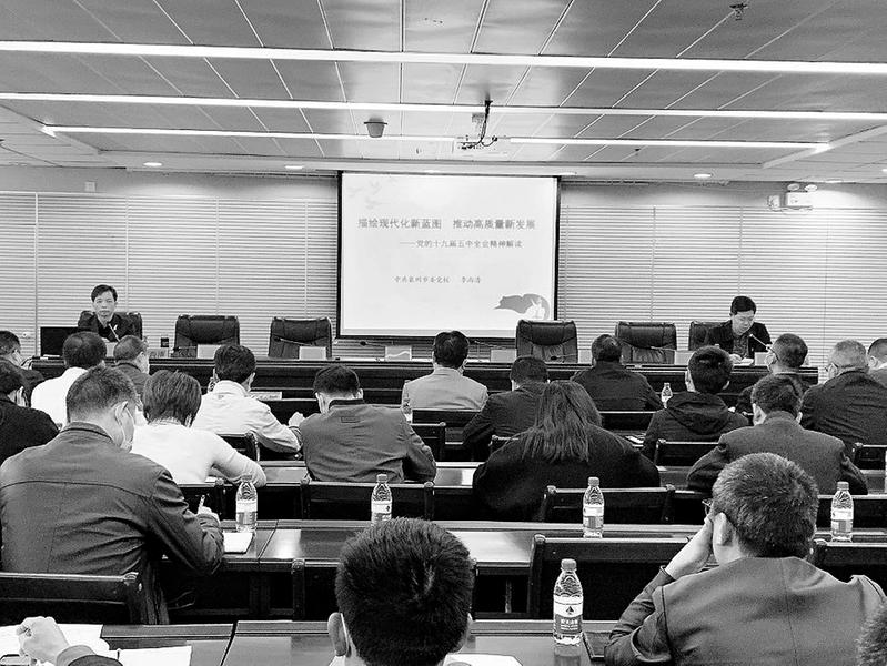 12月8日,肖厝港物流公司機(jī)關(guān)黨支部聯(lián)合福建省湄洲灣港口發(fā)展中心舉辦學(xué)習(xí)貫徹黨的十九屆五中全會(huì)精神輔導(dǎo)講座。肖厝港物流公司黨總支委員和機(jī)關(guān)黨支部全體黨員參加了本次講座。(黃琳 攝影報(bào)道)