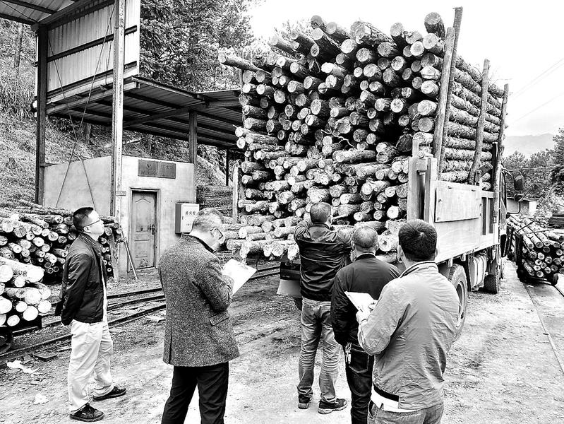為保質(zhì)保量完成坑木冬儲(chǔ)任務(wù),確保明年上半年雨季用料,永安煤業(yè)公司水井坑煤礦從完善紀(jì)檢監(jiān)察管理制度入手,嚴(yán)格驗(yàn)收進(jìn)場(chǎng)坑木。圖為12月18日,該礦紀(jì)檢部門對(duì)進(jìn)場(chǎng)坑木進(jìn)行驗(yàn)收。