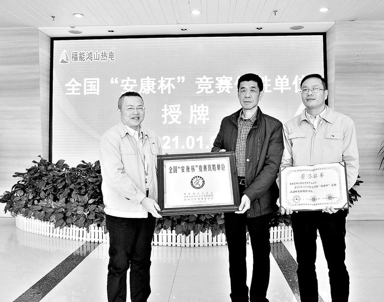 1月5日上午,全國(guó)‘安康杯’競(jìng)賽優(yōu)勝單位”授牌儀式在鴻山熱電公司舉行。泉州市總工會(huì)黨組書記、常務(wù)副主席王茂泉(中)一行來(lái)到該公司進(jìn)行授牌。據(jù)悉,該公司已連續(xù)7年獲得福建省“安康杯”競(jìng)賽先進(jìn)單位。(潘進(jìn) 劉寒婷 攝影報(bào)道)