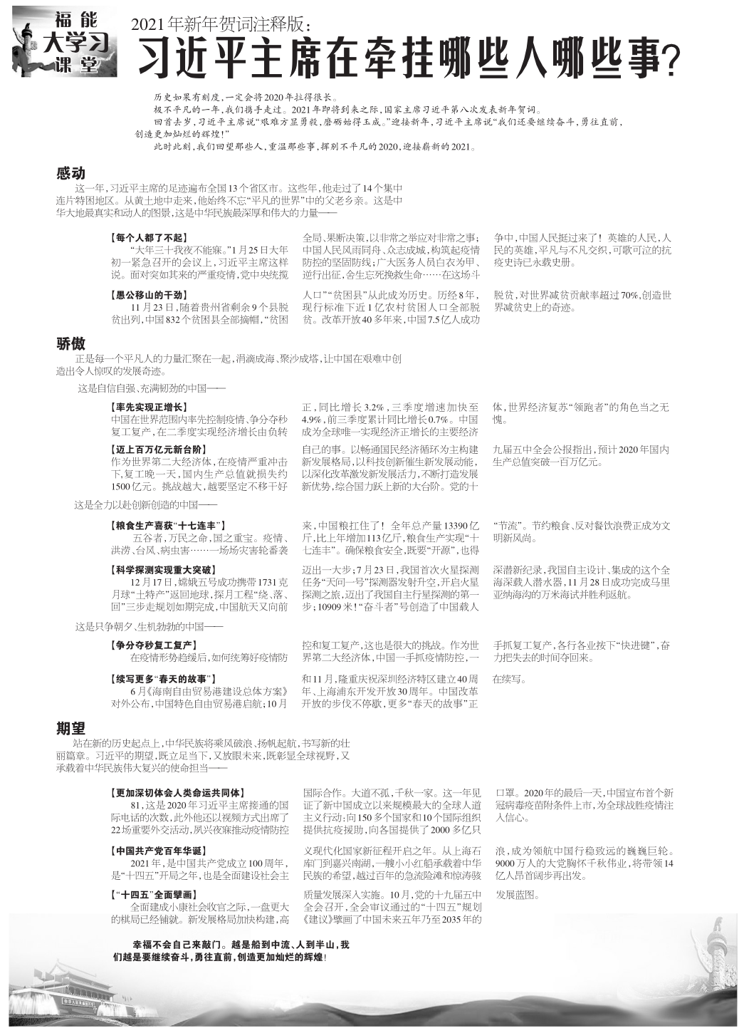 2021年新年賀詞注釋版:習(xí)近平主席在牽掛那些人那些事?